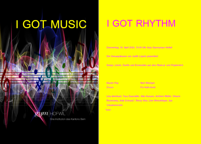 Die Gesangsklasse von Judith Lüpold präsentiert: Songs, Lieder, Duette und Ensembles aus dem Musical- und Popbereich.